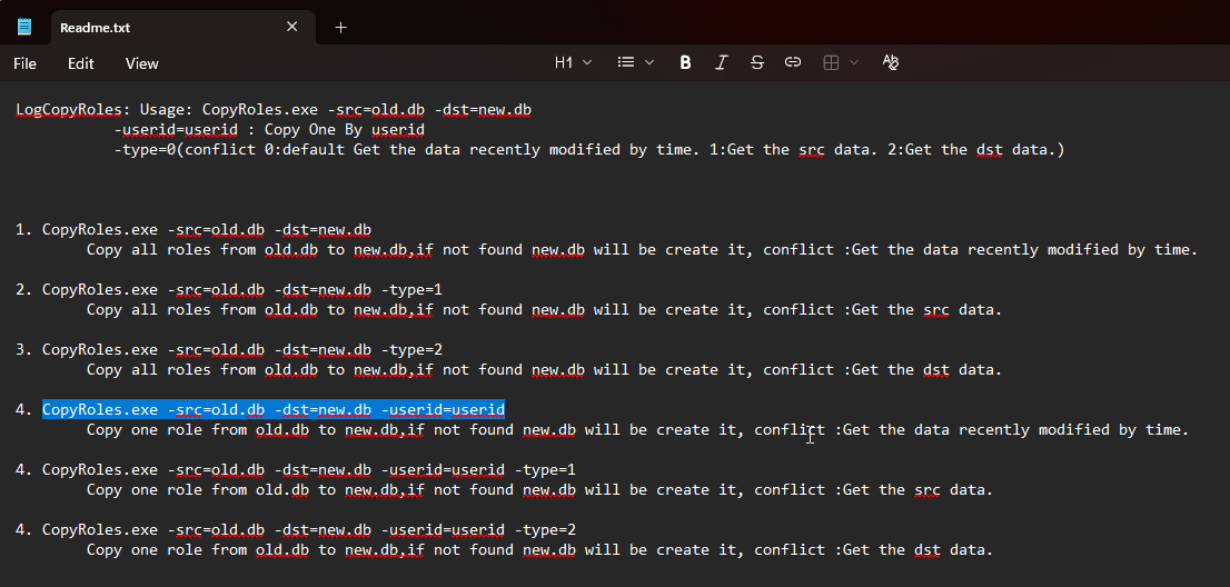 3. In the readme.txt in the folder, there are instructions and commands for the command prompt.