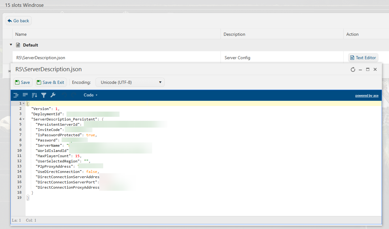 4. Hit "Save" once you are done editing. You can now start the server with the new config.