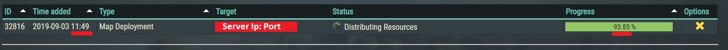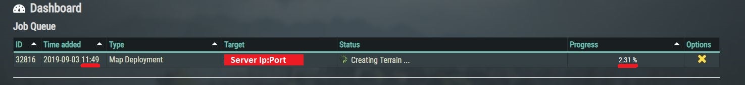 Once uploading of the terrain files is complete, you can start your server. Check and validate that it has started correctly.